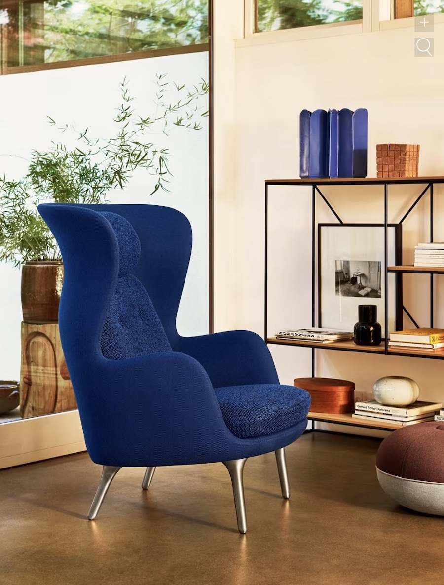 En danois, Ro signifie tranquillité. Ce fauteuil de Jaime Hayon pour Fritz Hansen invite à s’accorder une pause : lire, se détendre ou converser. Son enveloppe protectrice existe en tissu ou en cuir, avec des pieds en aluminium brossé. Une pièce conçue pour ralentir le rythme.